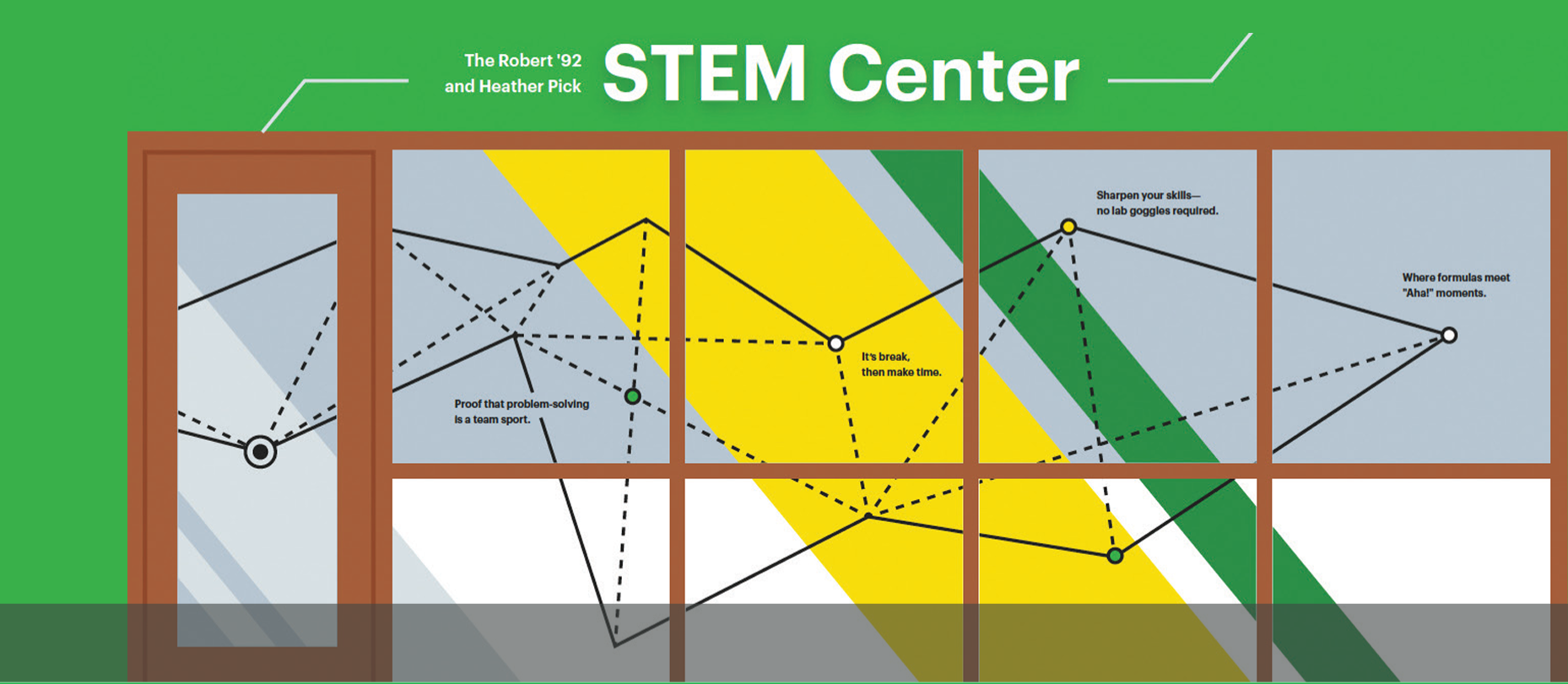 Pick says that he and his wife, Heather, were eager to donate to this project because it establishes a visible STEM pillar in the center of campus. “The liberal arts, in many respects, are all about ‘and.’ It’s not one discipline or the other; one culture or another. It’s about navigating all,” he says. “The STEM Center and Learning Commons underscore that all disciplines, methods, cultures, learning styles, and workways are welcome, available, and supported at McDaniel.”